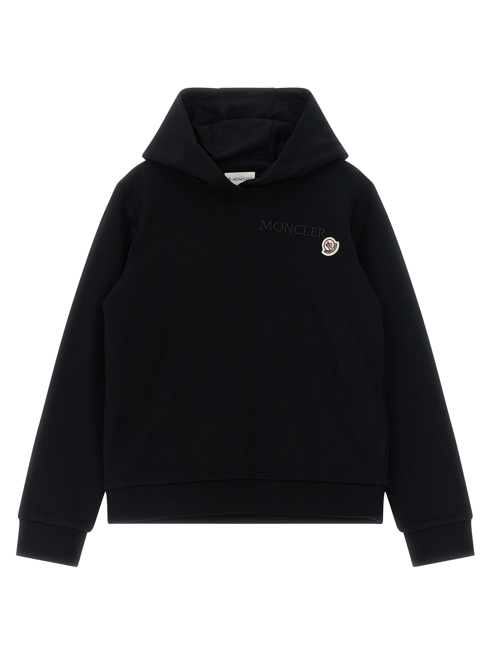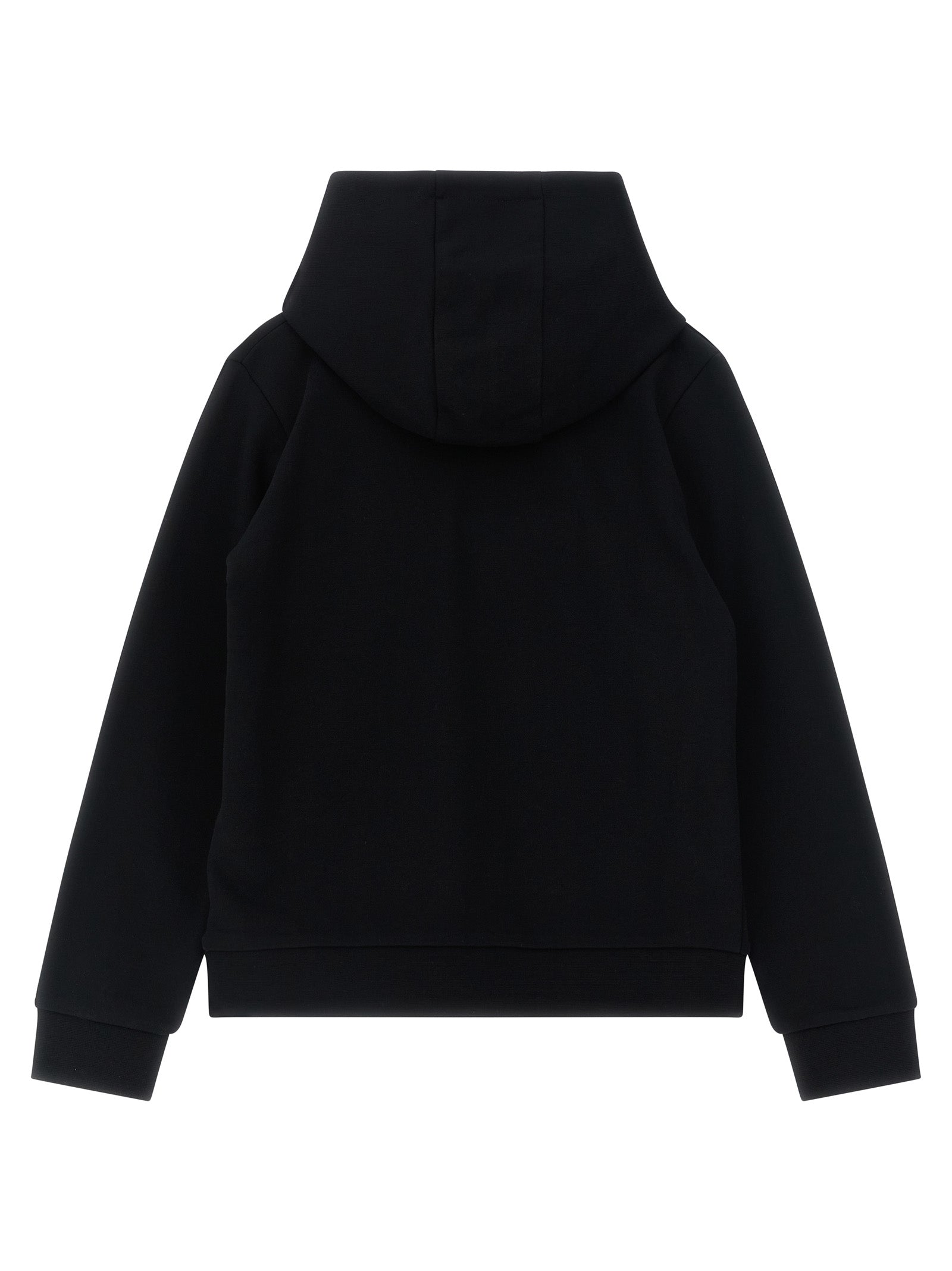Kids brushed cotton hoodie with tone-on-tone embroidery and felt logo patch on the front, Long cuffed sleeves, And headband on...
