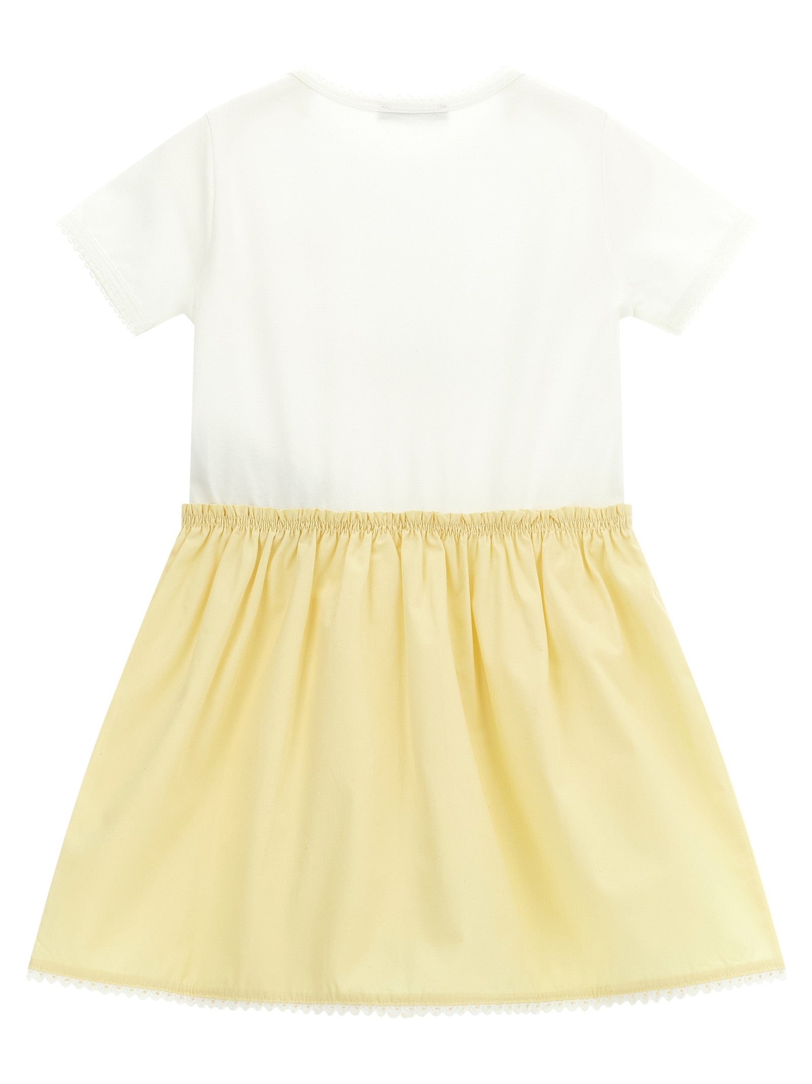 Trimming piping dress consisting of cotton top, Front felt logo patch, Crew neck, Snap buttons on the left shoulder, Short...
